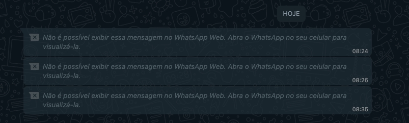 Se o contato estiver usando o WhatsApp Web, alguns templates dinâmicos podem não ser exibidos para ele. Em vez disso, uma mensagem será exibida solicitando que ele visualize a mensagem pelo celular.